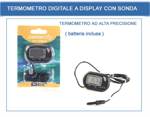 TERMOMETRO DIGITALE BLU BIOS CON DISPLAY E SONDA, AD ALTISSIMA PRECISIONE MISURA CON LA MASSIMA PRECISIONE LA TEMPERATURA DELL'ACQUA CHE VIENE SEGNALATA SUL DISPLAY VISIBILE ANCHE A DISTANZA. FORNITO DI BATTERIA